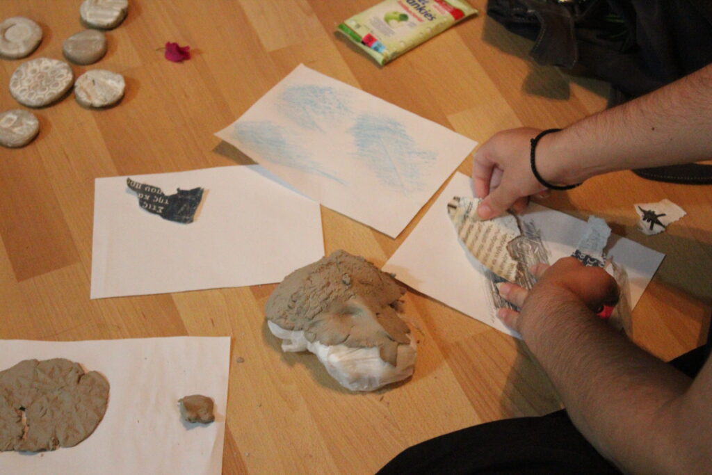 I was asked by Athens-based NGO InterAlia to organize and host a workshop for the students of CYA, who are visiting the city for the first time to study for a semester. I developed the theme of “Shaping Athens with Clay” as a way to allow them to explore the city themselves, to engage with fieldwork instead of solely engaging with activities inside the community space. The thematic structure of the workshop revolves around four Athenian contradictions: chaos-control, hope-despair, hard-soft & was-is. Participants were instructed to choose one contradiction and explore its physical manifestations in the public space of Exarcheia. This was done through three methods: collecting reliefs through clay, textures through paper and pencil, and found objects through gleaning.